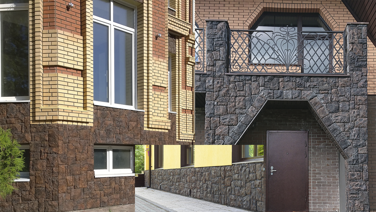 Мне нравится все хорошо выполненные работы из любого материала. Эффектно выглядит фасад из искусственного камня. Все что мы любим, глубина рисунка, интересные цвета, широкий ассортимент. Есть любимые всеми "покрупнее" Сам по себе материал прочный, покрытие стойкое к механическим повреждениям. Искусственный камень-это цветной бетон. Но есть и недостатки. Многие легкомысленно относятся к этим особенностям. Материал тяжелый. Нужно ответственно подходить к выбору клея. Еще должны понимать как бы вы хорошо не приклеили, все ровно периодически камни будут отпадывать. (Между стеной и камнем будет скапливаться конденсат который при замерзании будет разрушать раствор). Так же нужны правильные руки, желательно с опытом работы по камню. Камни могут быть не ровные. Рисунок нужно подбирать, при необходимости камни притирают друг к другу. О монтаже напишу в другой статье. Искусственный камень для более реалистичной схожести с кладкой из природного камня не имеет идеально ровной геометрии как у