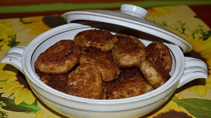 Разогреваем сковородку, наливаем чуток растительного масла, руки смазываем сливочным и начинаем лепить котлеты, обмакивая их в сухари (манку, муку, кто как любит). Можно даже не ждать, пока масло раскалится, а выкладывать по одной. Огонь у вас средне-сильный, через три минутки котлеты схватятся, подрумянятся и легко перевернуться. Ждем еще три-четыре-пять минут (зависит от толщины котлет), капаем на сковороду столовую ложку всё того же боржоми и накрываем крышкой, уменьшая огонь. Сейчас вы поймёте, зачем нужна была минералка. Котлеты мгновенно превращаются в пушистые подушечки, сочные и тающие во рту. Теперь осталось открыть крышку, снова увеличить огонь и убрать со сковородки путем испарения лишнюю влагу! Не котлетки - а праздник живота!