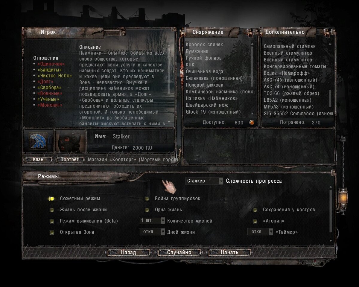 Всем привет, сегодня мы начнём выполнять один из сюжетных квестов в Сталкер Аномали. Поехали Начало Решил я начать за наёмника, ведь выполнять заказы на сталкеров,для меня легче,чем искать артефакты и т.д. Я пришёл в Коопторг, вот моё начальное снаряжение, спойлер я его очень сильно расширю Поболтал с Асланом, и взял несколько заданий и пошёл выполнять зачистку мёртвого города, от мутантов Вернулся на базу, получил денег за зачистку Сходил к Душману А у парней тут очередь Взял Квест Наёмников Сходил к медику И побежал на Армейку, выполнять заказ Не успел перейти и уже умер( Всем спасибо, за дочитывание моего похождения, подпишись если понравилось,вторая часть скоро. Пока