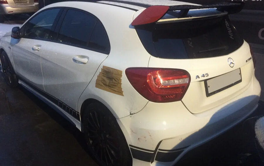 MERCEDES-BENZ A45 AMG — РЕМОНТ ЗАДНЕГО ЛЕВОГО КРЫЛА И ЗАДНЕГО БАМПЕРА НА ООООЧЕНЬ БЫСТРОМ АППАРАТЕ…))!