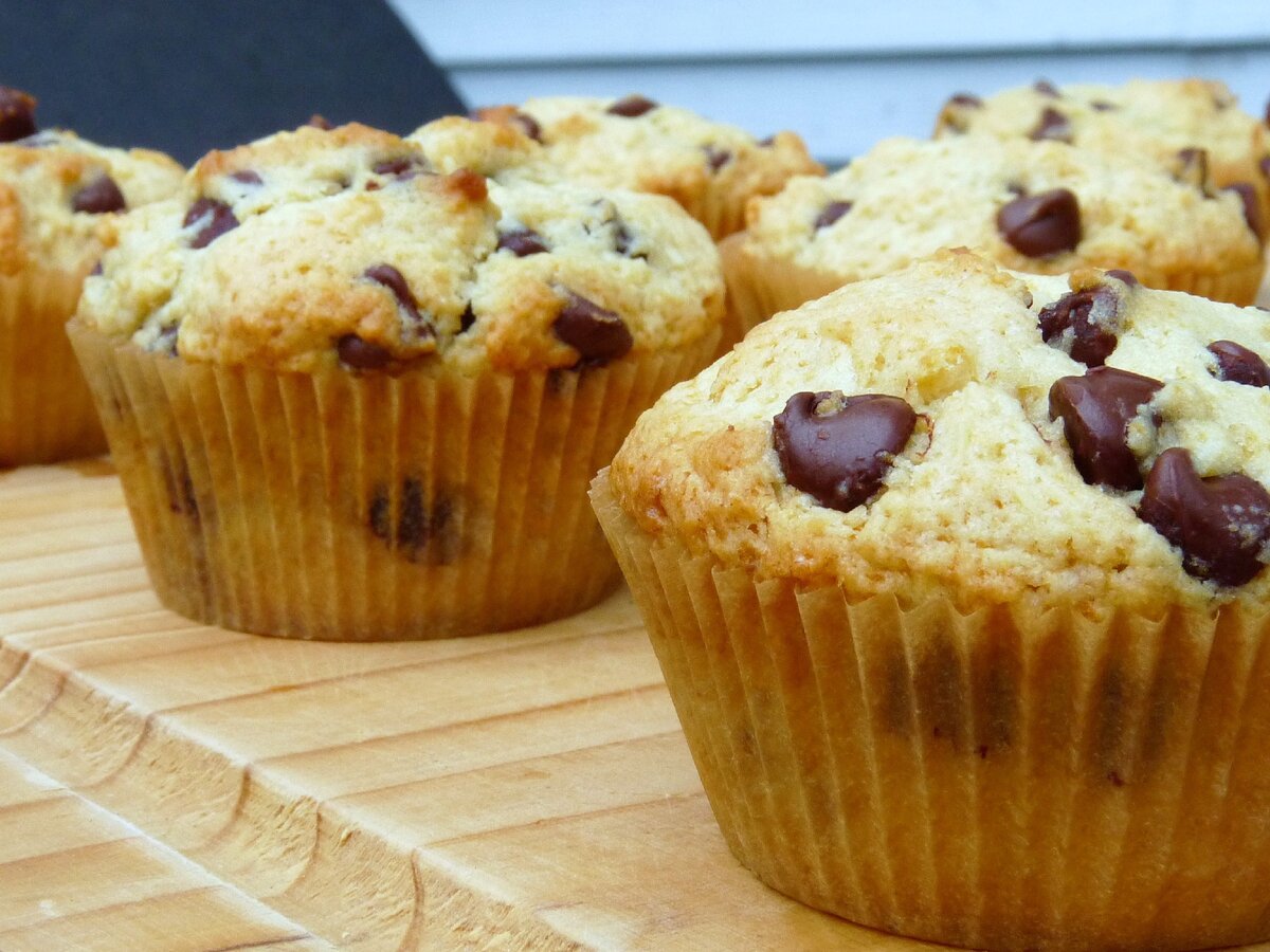 Ингредиенты: Масло сливочное 100 г; Сахар 100 г; Яйцо 3 шт; Мука 200 г; Разрыхлитель 1 ч.л.; Ванильная эссенция 1 ч.л.; Шоколадные чипсы 200 г; Приготовление: 1.Время приготовления - 40 минут 2.Разогрейте духовку до 180ᵒС. Разотрите масло комнатной температуры с сахаром, это займет всего пару минут. 3.Добавьте яйца и хорошо перемешайте до однородной массы. 4.В полученную массу добавьте шоколад и ванильную эссенцию и аккуратно перемешайте. 5.Смешайте муку и разрыхлитель, просейте её в массу. 6.Замесите негустое тесто. 7.Заполните формочки тестом на 2/3 и отправьте в предварительно разогретую духовку на 25 минут, пока «шапочки» маффинов не станут золотистого цвета. 8.Не передержите, а то низ кексов будет горелый. 9.Маффины получились замечательные! P.S: "шоколадные чипсы" можно заменить маленькими отломленными кусочками шоколада.