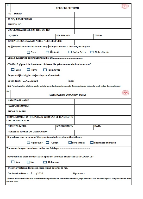 Итак пошагово: 1 анкета - по прилету в Турцию Вносим имя и фамилию, номер заграничного паспорта, номер телефона с международным кодом (+7 для России), а также номер телефона лица, который сможет связаться с вами. Далее указываем номер рейса, номер кресла, дату прилета, адрес в Турции, по которому турист будет проживать (корректное название отеля и город/курортный поселок, где он находится). Отмечаем галочками, если у вас есть один из следующих симптомов: высокая температура, кашель, боль в горле, затруднения с дыханием. Если их нет, проставлять здесь ничего не нужно. И указываем, в каких странах вы побывали в течение 14 дней до прилета (тут большинству из туристов потребуется просто написать Russia) и проставить «галочки» в ответах на вопрос «были ли вы в тесном контакте с человеком, у которого подозревают COVID-19» (здесь три варианта ответа: «да», «нет» и «не знаю»). С этой анкетой проходите на паспортный контроль. 2 онлайн-форма Роспотребнадзора на сайте Госууслуг. Найти ее можно