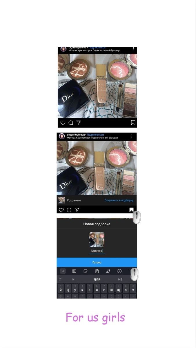 Дорогие девушки, сегодня мне бы хотелось поговорить с вами об инстаграм, уверена, что у каждой из нас он имеется в телефоне и большинство проводит немалое количество времени в этом приложении. Все мы знаем, что #Инстаграм это - платформа для обмена фотографиями и видеозаписями с элементами социальной сети. Данная программа позволяет снимать фотографии и видео, применять к ним различные фильтры, пресеты, а также распространять их через свой сервис и ряд других социальных сетей. В этой статье я бы хотела поделиться с вами крутыми секретами Instagram, ведь соцсеть очень быстро развивается, внедряя все новый и новый функционал. Итак, поехали! 1️⃣ Создание подборок в закладках. Instagram — настоящий источник вдохновения. Чтобы не потерять понравившийся пост, мы часто добавляем его в закладки. Со временем количество этих закладок достигает огромного количества, и быстро найти в нужный момент важную публикацию становится довольно - таки трудно. Чтобы облегчить процесс поиска, когда вы