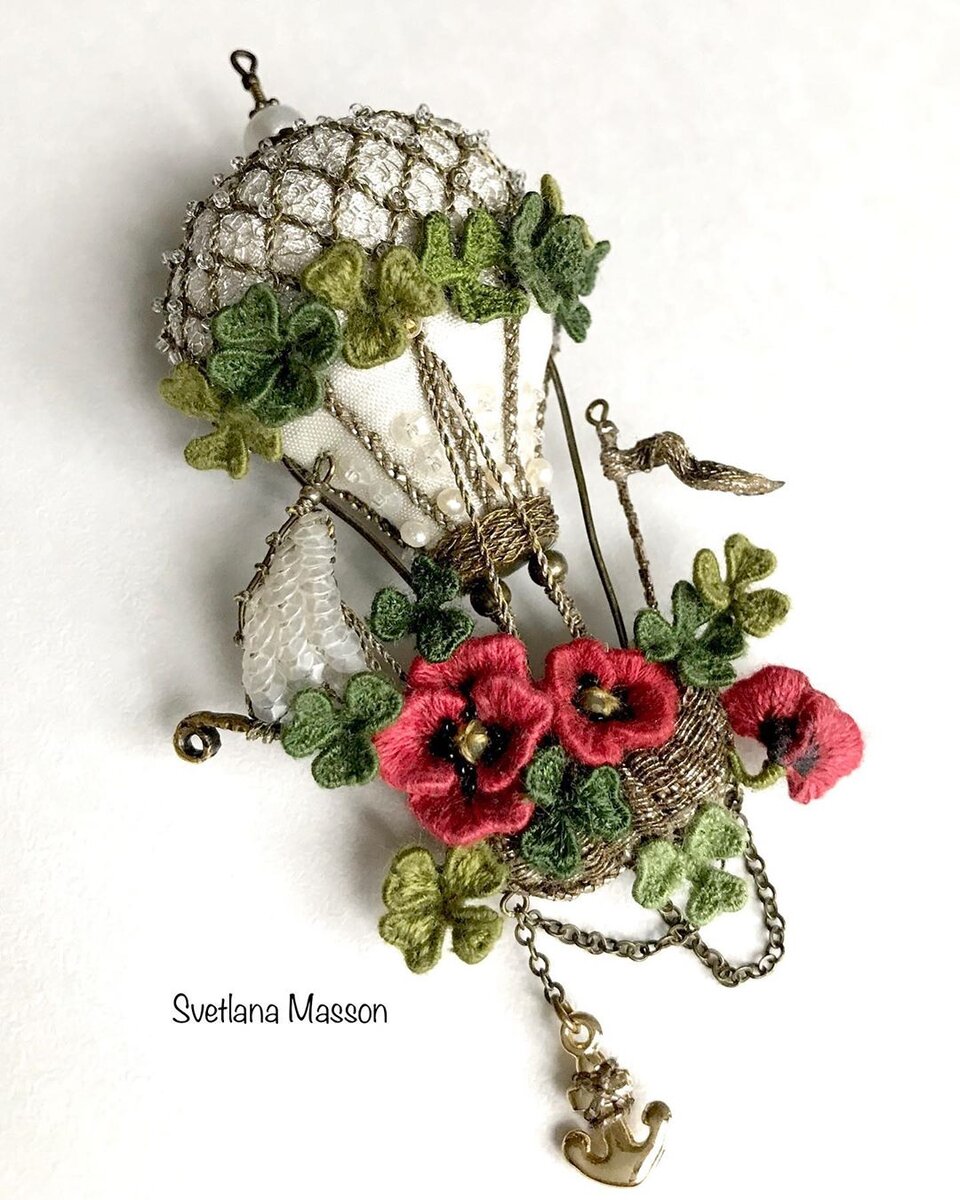 Винтажные корабли и аэростаты, украшенные вышивкой, смотрятся просто фантастически.