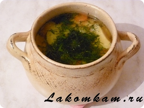 Суп «Шулпа в горшочке». Ингредиенты: мясо (обязательно на косточке); картофель — 4 штуки; лук репчатый — 1 штука; морковь — 1 штука; топленое масло — 1 столовая ложка; соль, перец, зелень.