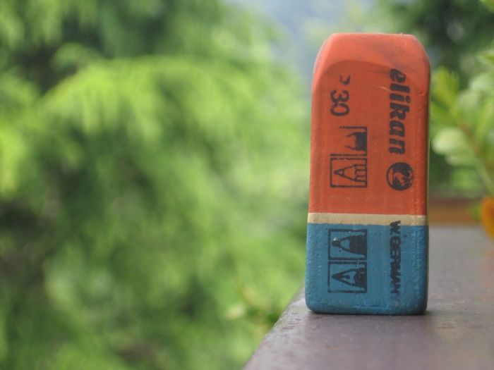 3. Двухцветные ластики. Раньше они использовались для стирания записей карандаша на разных типах бумаги. Гладкая сторона была предназначена для мягких сортов бумаги, а шершавая — для жестких. Позже шершавую часть ластика стали позиционировать для удаления записей ручки.
