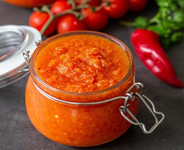 Аджика из помидор на зиму – это ароматный острый соус из кавказской кухни на основе помидоров, чеснока и других овощей. Этот соус имеет несколько вариантов составляющих, он подходит почти ко всем блюдам из запеченного или жареного мяса. Соус имеет сбалансированное сочетание острых, кислых, сладких, ароматных компонентов и всегда был очень популярным в восточной Европе.