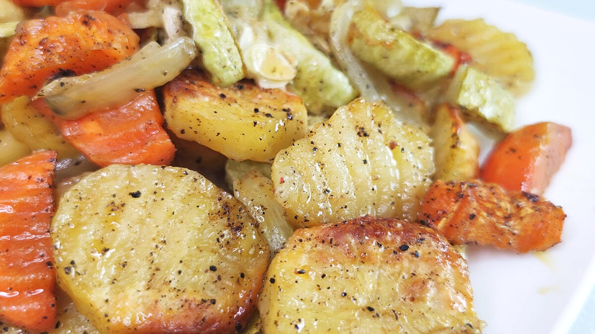 Здравствуйте, уважаемые гости и читатели моего канала!💐 Сегодня готовлю, пожалуй, самый вкусный и при этом полезный летний гарнир. Это несомненно овощи.👍 Я часто готовлю различные сочетания овощей в духовке. Но именно в таком сочетании они получаются очень сочными!😉 В конце этой статьи я разместила СПИСОК ИНГРЕДИЕНТОВ и подробный ВИДЕО РЕЦЕПТ. Буду очень рада, если он Вам понравится! 🥕1.Я нарезаю репчатый лук. 🥕2.Далее специальным фигурным ножом я нарезаю картофель. 🥕3.Затем нарезаю морковь. 🥕4.Далее нарезаю кабачок, овощи я использую на глаз. 🥕4.Затем я выкладываю овощи в блюдо и добавляю к ним соль и любимые специи. 🥕5.Далее я посыпаю сухой чеснок, чёрный молотый перец и все обильно поливаю растительным маслом. 🥕6.Перемешиваю овощи руками, так получается перемешать все более равномерно. 🥕7.Выкладываю их на противень и ставлю в разогретую до 180 градусов духовку на 40-50 минут.🙌 Такие овощи отлично подойдут ко всем видам основных блюд на основе рыбы,мяса или птицы. Овощи