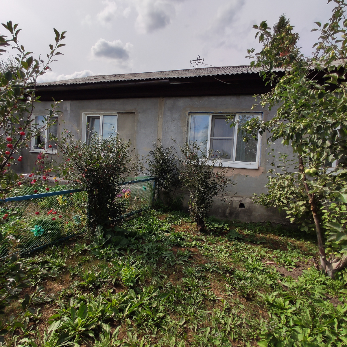 Единственный малюсенький заборчик между нами был поставлен еще в конце 80-х из-за того, что у нас по двору гуляли куры и ходили к соседке топтать цветник.