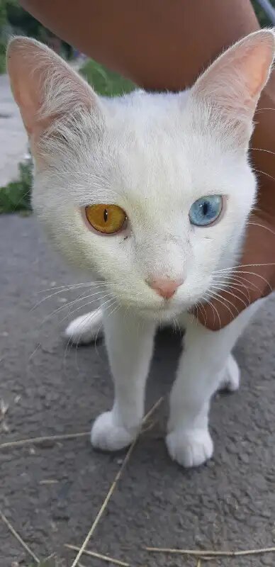 здравствуйте, сегодня расскажу, как мой друг нашел на улице кота с разным цветом, глаз которого никогда не видел, он был так счастлив и решила его пофотографировать, пользуюсь этим моментов, я решил написать эту статью. а как он жил за границей, у них там нету кошек, никогда в жизни их не видел, он увидел его еще, оказывается, что у них разные цвета глаз. я его рассказал легенду, как появился это кошка, у которого разные глаза. м - рассказала, что однажды он, этот кот, поднимался на полку, уронил краску с цветное и которая попала ему в глаза, поэтому не разноцветные. конечно же, сразу поверила в эту легенду. еще взять эту кошку себе, но потом вспомнил, что он живет в общежитии и нельзя его. вот и сказке конец, как говорится. ну, Мамед серого, ну молодец.