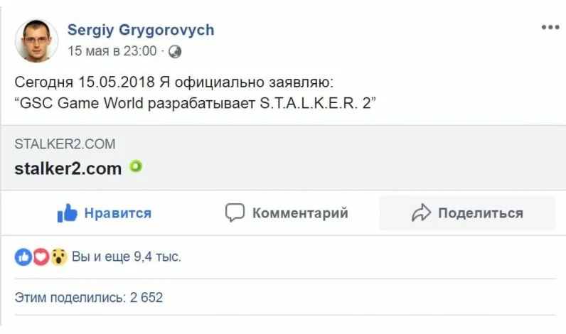 Привет, сегодня погорим на тему S.T.A.L.K.E.R 2. Начнем по порядку. Сергей Григорович со своего аккаунта в Facebook сделал официальное заявление: «Сегодня, 15.05.2018, Я официально заявляю: GSC Game World разрабатывает S.T.A.L.K.E.R. 2». В качестве доказательства он также выложил изображение и ссылку на официальный сайт — www.stalker2.com (был продлен домен Stalker2.com арендованный в 2014 году), на котором красуется примерная дата выхода игры — 2021 год. Ссылки на сайт Сталкера 2 появились и на официальном сайте GSC, что подтверждает слова Григоровича. На данный момент фанаты игры, уже имеют трейлер. https://www.stalker2.com Сюжет новой серии. До того, как прекратился первый этап разработки игры, представители компании GSC Game World успели много рассказать о том, какие дополнения будут во второй части легендарной игры. Например, в феврале 2010 года, украинское издание Gameplay опубликовало интервью, в котором Сергей Григорович, помимо подтверждений о том, что Сталкеру 2 сужде