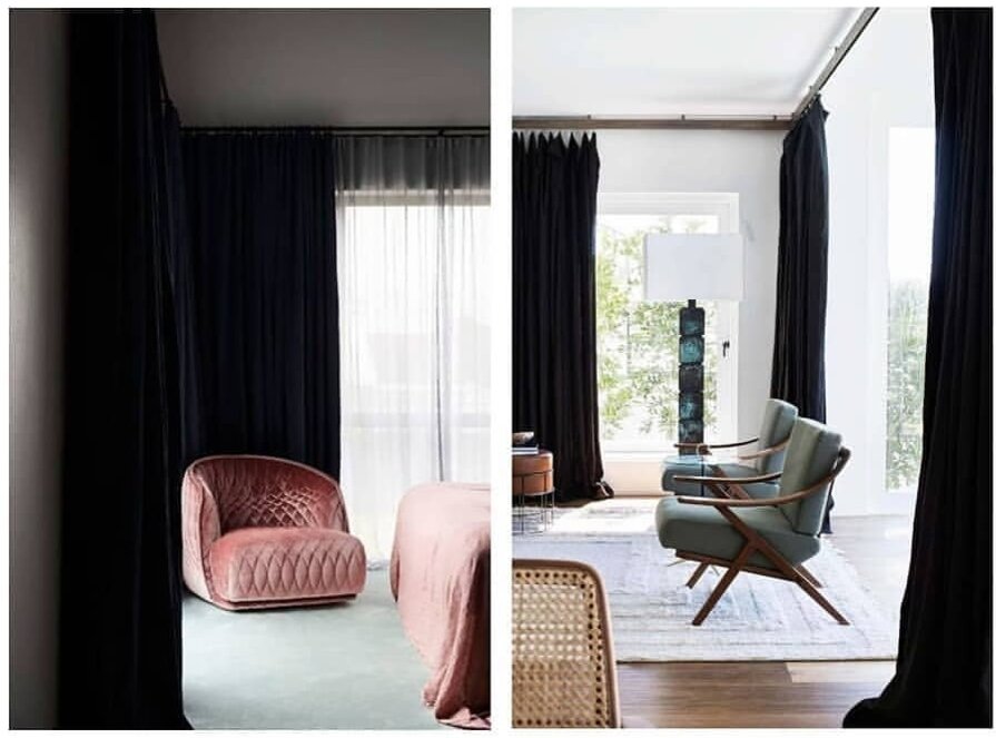 Такие шторы способны заметно повысить выразительность вашего интерьера и придать интересную, не избитую изюминку. Однако помните о том, что черная поверхность (особенно во всю стену) способна активно поглощать свет. Это выгодно, когда нужно скрыться от солнца за окном. Но вечером внутри помещения понадобится больше искусственного освещения, чтобы не чувствовать себя как в пещере.