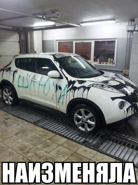 Без предисловия? Поехали? Что это? Месть? Или чувство справедливости? За что машины то? Досталось Жуку))) Хотя Жук и так страшный, страшнее от этого не стал)) Честно - не нравится эта машина - ну да, чисто женская, да, Ниссан, но один фиг, ещё и белый... Мда... Долг вернуть наверное было бы дешевле)) Точно любит... Не рекомендую парковаться на газоне)) Хм... судя по авто - о детях думать надо было той, кто выбрал хозяина этой тачки, точнее подумать от кого рожать... Ну хотя да, некоторые бабы любят неудачников в виде гопоты, нарков и прочего))) Чей Крим? Их крим? А чей их пади разбери) Чей? Красаучег - неплохой лайфхак для поиска любовниц))) А это просто пи...ц, ну то есть подкрасили маленько)