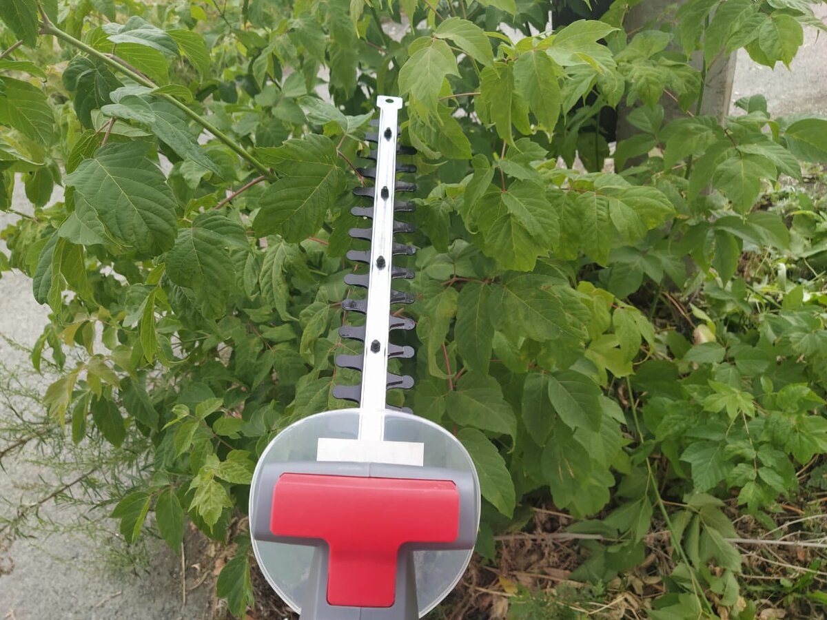 Для обрезки живой изгороди, для оформления крон у яблонь, ив, акаций и других декоративных деревьев он подходит идеально! Мелкие веточки срезает быстро и точно. Кроме того хорошо показал себя кусторез и на ниве уничтожения крупных сорняков, который не берет триммер с леской.