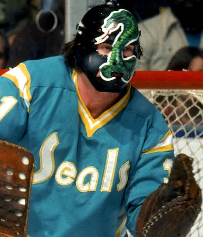Вашему вниманию представлю 5 хоккейных масок, которые в свое время повергли в шок, как игроков соревнующихся команд, так и болельщиков. 5. Кобра Гарри Симмонса Очень много шума наделала в 70-х огромная змея, расположившаяся прямо между глаз голкипера «Калифорния Голден Силз» Гари Симмонса. Его прозвали «Коброй» еще в начале карьеры, когда он выступал за фарм-клубы. Конечно, его гибрид кобры и гремучей змеи не совсем соответствует тому, что мы знаем из зоологии, но его маску нападающие соперников запомнили надолго. 4. Тигриная пасть Жиля Граттона Любой нападающий, выходящий на лёд в очередном матче чемпионата, не будет готов увидеть в воротах соперников ужасного тигра. Наверное, именно так и думал голкипер «Нью-Йорк Рейнджерс» Жиль Граттон, придумывая этот эксцентричный стиль для своего шлема. Маска выглядела очень эффектно и произвела должное впечатление. 3. Череп Гарри Бромли Этот голкипер особо долго не думал в выборе своего стиля. За него все придумала общественность, нарекшая Бром