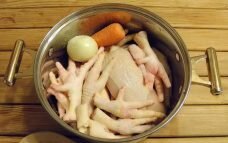 Холодец из куриных лапок – это недорогой и достаточно простой способ разнообразить повседневное меню. К тому же к этим неоспоримым преимуществам добавляется значительная польза кушанья. В статье рассмотрим тонкости исполнения наиболее вкусных и аппетитных рецептов. Подготовка продуктов и посуды Самый распространённый способ приготовления холодца – это продолжительная варка мясных ингредиентов на медленном огне. Поэтому особых навыков для создания заливного не потребуется. Главное – выбрать наиболее подходящий рецепт, купить к нему продукты и правильно их обработать. На этапе подготовительных работ в первую очередь необходимо почистить куриные лапки. Для этого: Для приготовления холодца используется обычная кастрюля с толстым дном. Литраж будет зависеть от количества ингредиентов. Кухонную утварь перед началом приготовления заливного следует тщательно вымыть с чистящим средством и ополоснуть большим количеством проточной воды. Завершающим этапом является подготовка судков. Здесь мож
