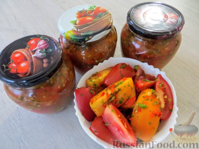 Сегодня любимый рецепт острых помидоров на зиму! Наконец-то узнала точные пропорции! Урожай хороший, поэтому помидоры по-корейски буду делать несколько раз! Смотрите точные пропорции и повторяйте на здоровье. Заготовим лето в банки! Продукты Видео рецепт Помидоры по-корейски на зиму Пошаговый фото рецепт Помидоры по-корейски на зиму Подготовим все ингредиенты. Большие помидоры режем крупными дольками. Маленькие помидоры просто разрезаем пополам.