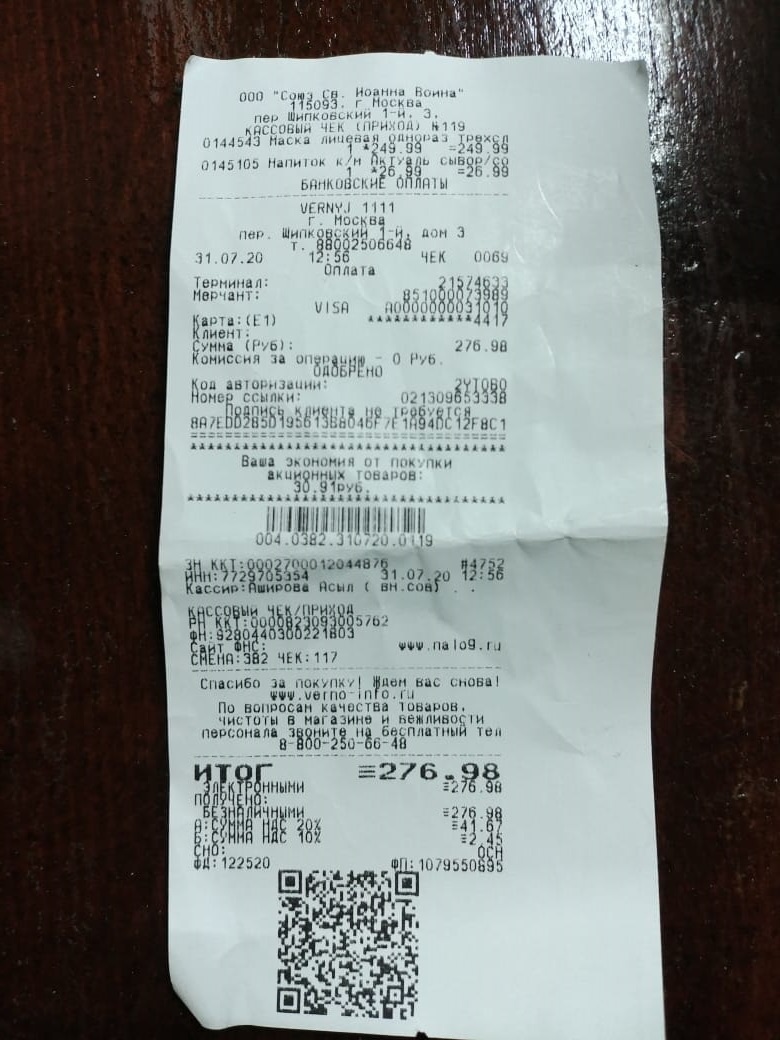 Вчера 31.07.2020 зашел в магазин Верный по адресу: г. Москва 1-Щипковский переулок д 3. Выбрал сыворотку молочную и в этот момент открывается дверь выбегает администратор магазина и начинает как резанная кричать. Что без медицинских масок они не обслуживают и увидев меня, а я без маски заявляет - что не обслужат если буду без маски. Ок. Делаю вид что ничего не слышал спокойно иду на кассу. Думаю пока суть да дело проверну факт их нарушения. А именно: продадут ли они мне медицинские маски без медицинской маски. Эту покупку мне удалось осуществить кассир изначально заявила что - без маски они не обслуживают но маски продать могут, а только после этого продать то что я выбрал. Маски мне обошлись: 286 рублей за 10 штук и сыворотка молочная 27 рублей. После чего. Я ей обьявил что она допустила нарушение, а именно принуждение к покупке товара не нужного мне абсолютно тем самым нарушив статью: ГК РФ Статья 426. Публичный договор часть 3. (3. Отказ лица, осуществляющего предпринимательску