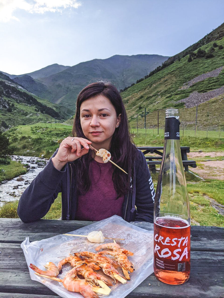 Пару недель назад мы ездили в Пиренеи на пару дней. Освежиться и отдохнуть от людей. Место очень красивое и уединенное. Туда невозможно даже добраться на машине. Только специальный поезд. В Долине Нурия только один отель и пара кафе в нем же. Обычно это говорит об очень низком качестве еды, которую там подают. Оно и понятно — людям некуда деваться, они вынуждены там есть, поэтому можно особо не стараться.