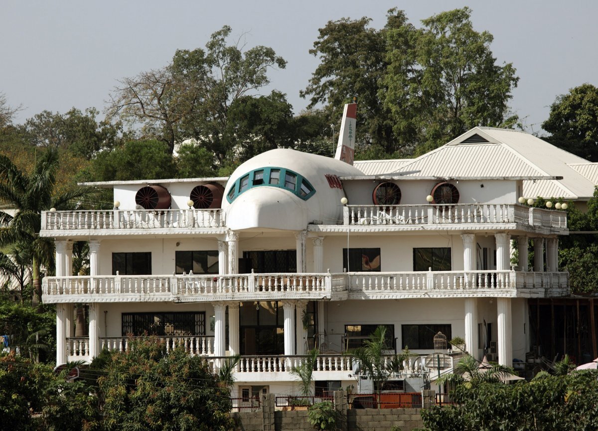 Вот это странное здание находится в Нигерии. Внимательный читатель может заметить, что хвост самолета раскрашен... правильно - в цвета ливанского флага. В Африке живет много ливанцев, в основном, во франко-говорящих странах. Это один из них такое создал.