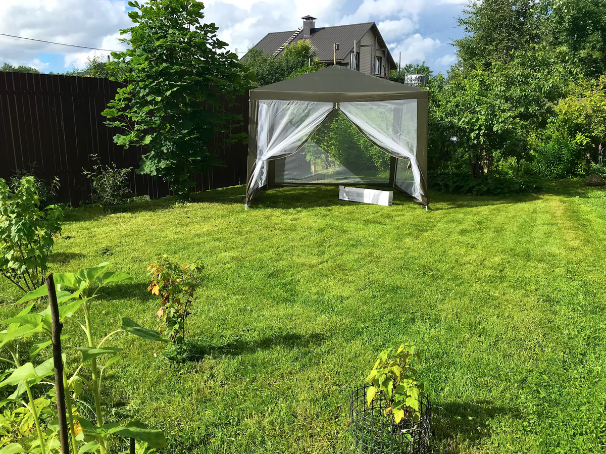 Здравствуйте, дорогие читатели! Сегодня хочу рассказать, как мы отметили мой юбилей. Подготовкой занялись дня за 3, гостей должно было быть 23 человека. Можно было всех разместить в доме, но посоветовавшись с гостями решили организоваться на улице, чтобы все участвовали в приготовлении шашлыка, да и на свежем воздухе всегда лучше. По прогнозам должно быть облачно и дождь только в первой половине дня. Собственно говоря, никаких переживаний, у нас было два шатра на всякий случай. Мы с мужем с вечера установили шатры. На фото вид из окна кухни, очень удобно подавать все блюда. Продумали все до мелочей, столы поставили и свет провели. Ранним утром начался сильный дождь, но по прогнозам он только до 15:00, так что все вроде и ничего, на стол накрыть успеваем, гости приглашены к 18:00. Эх, ребята, за дождем начался сильнейший ветер, это было так обидно, пришлось мгновенно переносить столы в дом и накрывать там. Многие подумают, что можно в ресторане праздновать и не заморачиваться. Конечно,