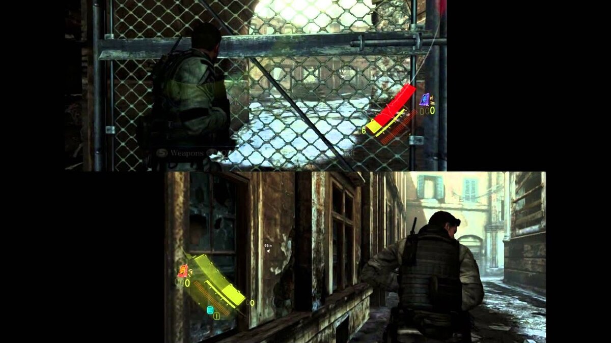 Игр, в которые можно поиграть вдвоём или небольшой компанией, не так уж и много, а потому и ценятся они чуть выше уже знакомых и не новых проектов. Но вот Resident Evil среди игр на двоих ценится ещё чуть выше, т.к. вдвоём можно опробовать аж 3 игры из серии. Это Resident Evil Revelations 2, Resident Evil 5 и Resident Evil 6. Отметим общий аспект - во всех 3 частях играть по диванному кооперативу придётся через сплитскрин (Разделение экрана) и вот как это выглядит.