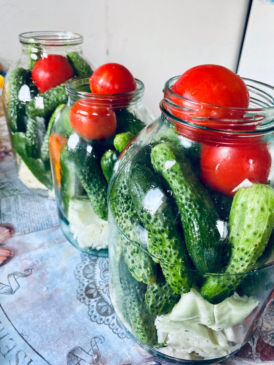 Всем привет, кто читает. 👋🏼 Капуста лопается, огурцы только успевай собирать, кабачки вырастают за ночь, помидоры краснеют. Грех жаловаться на урожай, поэтому нужно собрать все силы в кулак и закатать банки. Зато как зимой классно, отварил картошечки и открыл баночку овощей и готово ✅ Что нужно для вкусного ассорти? Собрать все овощи и правильно залить вкусным маринадом. Первым делом хорошо моем нашу тару. На дно банки выкладываем любимые травы(зонтики укропа, эстрагон, хрен, листья смородины, вишни) в дело можно пойти всё, от этого будет зависеть особый вкус заготовки. Далее режем капусту кусками, желательно крупно, но так, чтобы прошло через горлышко банки. Выкладываем овощи по степени их плотности. Сверху всегда оказываются помидоры. Можно заполнить банку огурцами, молодой морковкой, резаными кабачками, сладким и острым перцем. Не забудьте зубчики чеснока. Кипятим воду и заливаем наши овощи, ждём пока вода остынет. После того, как остыла, выливаем воду и заливаем новой па