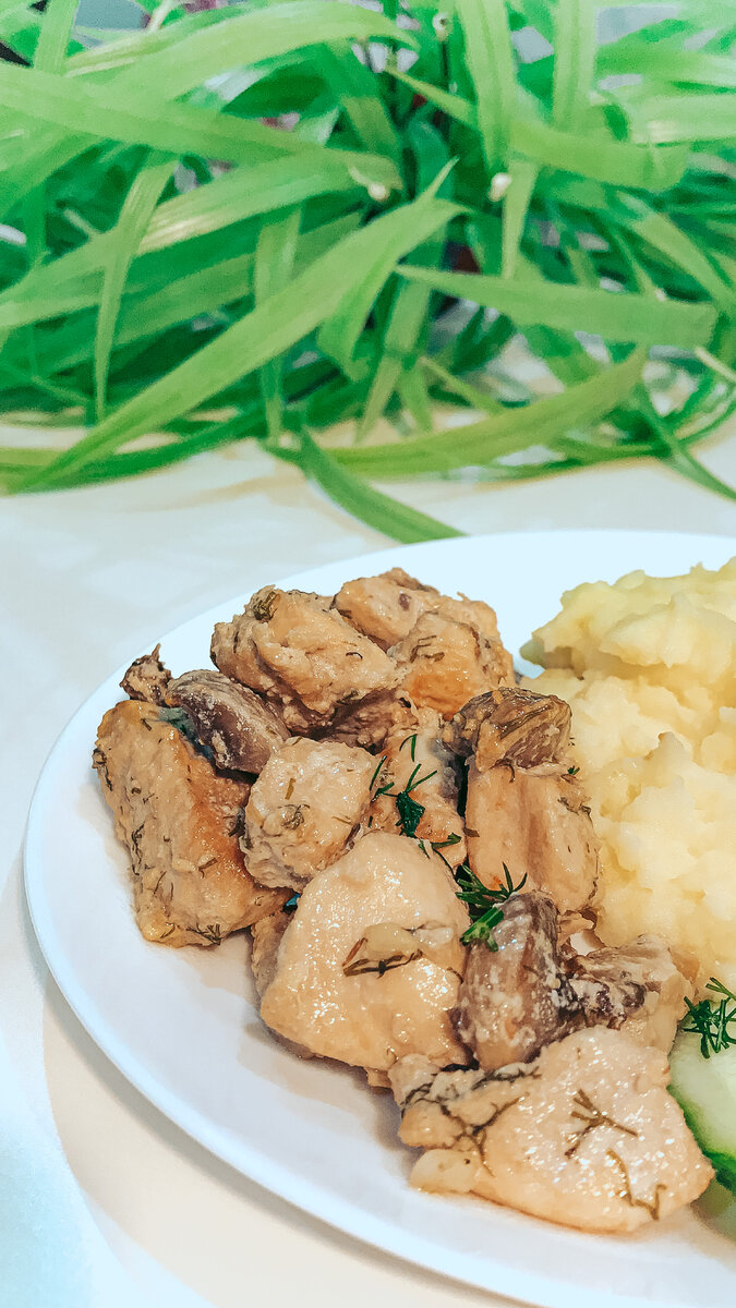 ▪️Сочную курицу с грибами можно подавать с любым гарниром. Так же хорошо сочетается с овощным салатом.