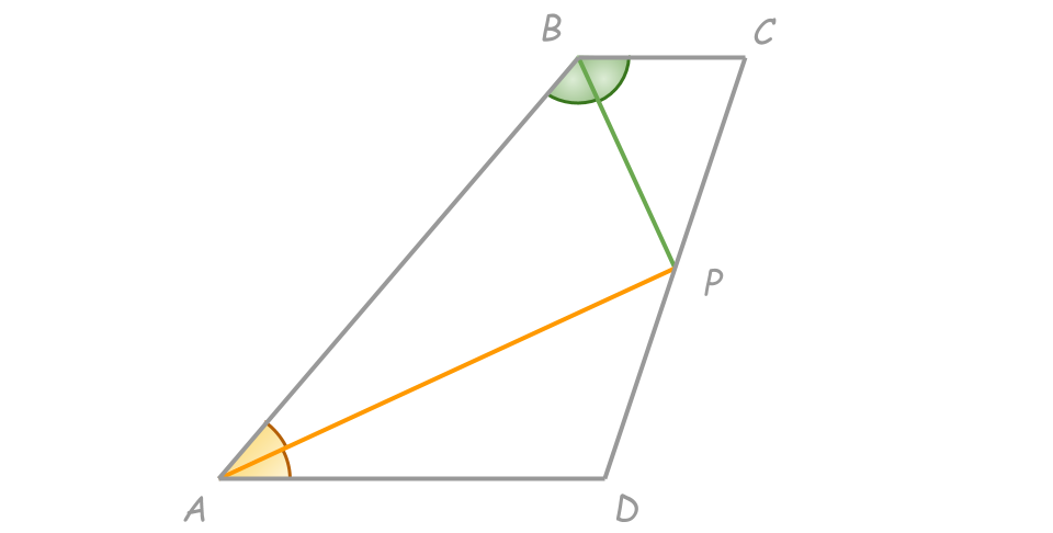ABCD — трапеция, см. рисунок. Точка P — пересечение биссектрис AP и BP — расположена на CD. Докажите, что AB = AD + BC. Примечание. Биссектрисы внутренних углов трапеции (параллелограмма) частенько встречаются в профильных задачах.