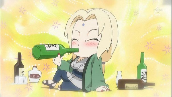 - 1. Цунаде очень любит сакэ, но в манге не показано насколько, потому что это сёнен и Кишимото запретили рисовать её выпивающей много. То же самое с курением.