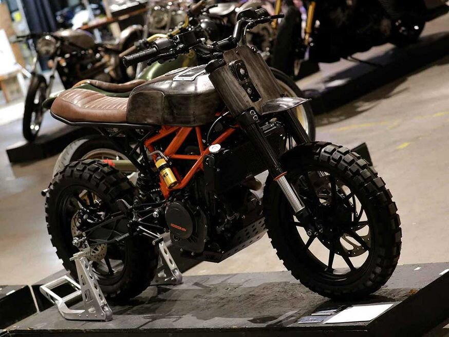 Handbuilt Show стало обязательным событием каждый год в Остине, штат Техас, во время гоночного уик-энда MotoGP. Теперь он соперничает с One Motorcycle Show по качеству и количеству участников, а также по событиям, которые окружают само шоу. В этом году была Суперхулиганская гонка на следующий день после шумной стартовой вечеринки, а в воскресенье-документальный показ фильма Гарета Робертса "нефть в крови". Этот KTM Duke 390 2017 года выпуска едва узнаваем, если не считать оранжевой решетчатой рамы и фирменного сингла. Кольт Вранглер Лайонс придал этой машине апокалиптический вид с помощью изготовленного на заказ подрамника, бака, сложенных фар и обертки фар. Удивительный бит на этом необработанном мотоцикле-это 8-дюймовая ЖК-панель датчика, встроенная в топливный бак, приятный современный штрих к сборке этого необработанного мотоцикла. Брайан Фуллер и Бобби Хаас решили представить себе, что сделал бы Джордж Рой, строитель Majestic 1929 года, с мотоциклом 100 лет спустя;” 2029 " - это