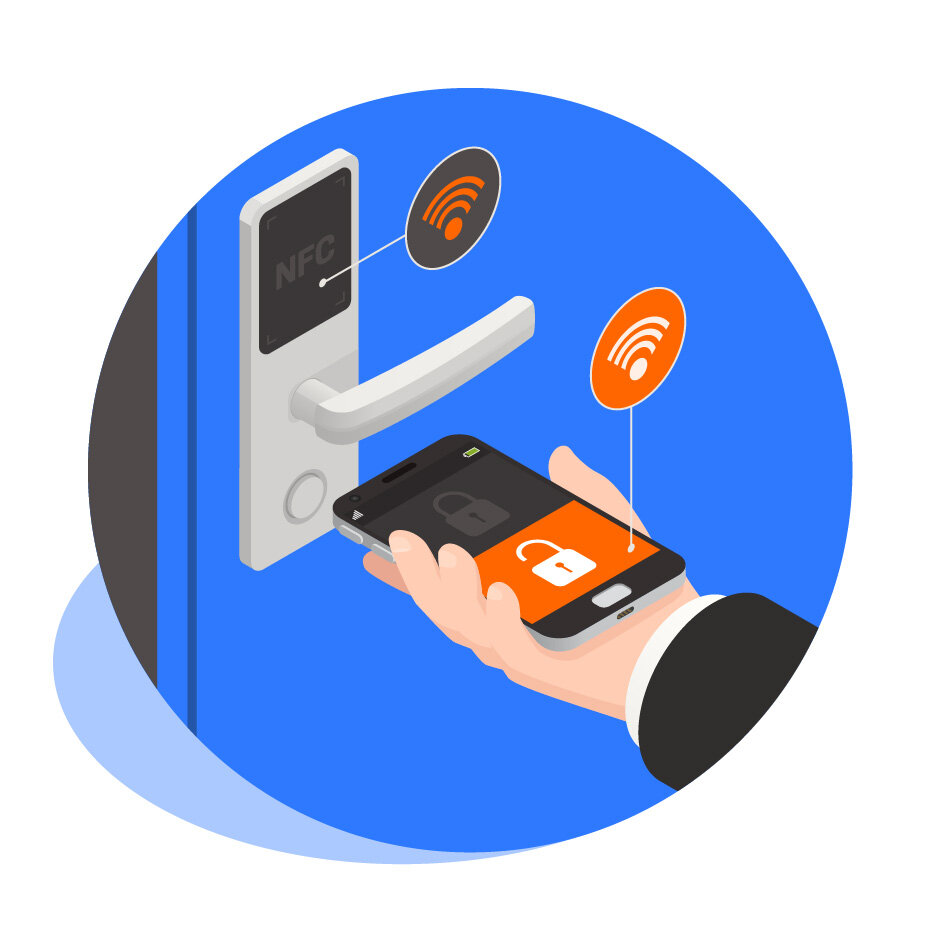 В данном решении смартфон выступает в роли идентификатора. Для этого необходимо, чтобы смартфон имел модуль с поддержкой NFC. Технология NFC – это беспроводная технология малого радиуса действия для обмена данными между устройствами.
