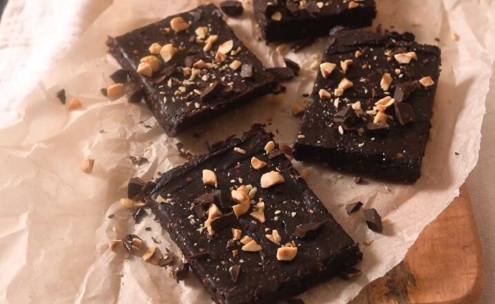 Как остынет, режем на кусочки, по классике - квадратные и посыпаем рубленными орехами, шоколадом и чуть солью. Или ещё как угодно украшаем 😸