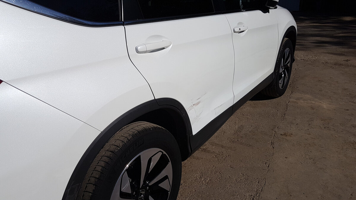 Дама за рулем - картина приятная. Но как показывает практика, большинство представительниц прекрасно половины общества имеют довольно посредственные навыки вождения. Пример ситуации: девушка на парковке двигалась задом на своем Мерседесе, и случайно ударила Honda CR-V. Больше всего повреждений пришлись на переднее левое крыло и передняя левая дверь. Немного была зацеплена стойка лобового стекла и капот. Но им хватит простой покраски, чтобы убрать царапины, без каких-либо дополнительных работ. Ремонт переднего левого крыла оказался невозможным. Как следствие - замена. Что касается двери, то здесь не все однозначно. Стоимость новой оригинальной - 40 - 50 тысяч рублей. Можно было найти копию за меньшую сумму, но далеко не факт, что у нее будет геометрия, как у оригинала. После некоторых раздумий принято решение о ремонте. Здесь нужно избавляться от вмятин на плоскости, и заломов профиля ребра. Начинаются работы со снятия переднего левого крыло. Необходимо удостовериться, что никаких с