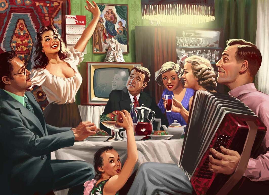 Новый год на моей родине в Советском Союзе был одним из самых ожидаемых и радостных праздников. Его отмечали все и везде. Каждый человек и взрослый и совсем еще малыш готовил к этому празднику подарки, из-за большого дефицита продуктов и деликатесов задолго до нового года закупались шпроты, икра всех цветов, сырокопчёная колбаска, маринованные огурчики, огромные банки с селёдкой, с зеленым горошком, жуткое количество майонеза, горчицу хрен, баночную ветчину "Ланчен мит", шоколадные конфеты и многое, многое другое. Всё это тщательно упаковывалось в холодильники и морозильники и строго-настрого запрещалось есть всем членам семьи, так как это "на Новый год". Дети всегда отмечали Новый год в семьях, молодые люди ходили в гости, устраивались вечеринки, а кому везло встречали этот праздник в ресторанах, но это были очень везучие и обеспеченные люди! Но главным образом, советские люди встречали Новый год дома!