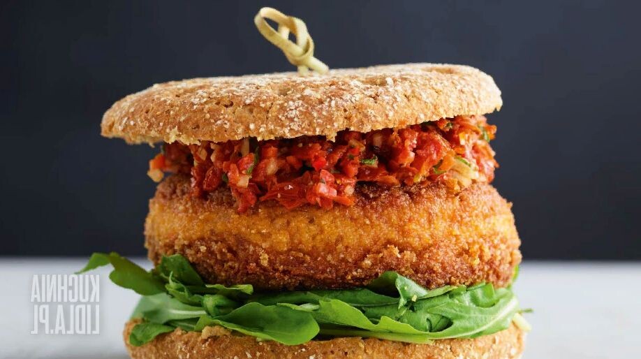 САЛЬСА С ПОМИДОРАМИ ДОПОЛНИТЕЛЬНО ШАГ 1: ЖАРИТЬ ГАМБУРГЕРЫ Слейте тофу на ткань от избытка воды. Измельчаем их вилкой в миске и смешиваем с панировочными сухарями, соевым соусом, картофельной мукой и мелко нарезанными: луком, вялеными помидорами, чесноком. Тщательно разминаем массу. Если она слишком влажная-добавляем еще панировочных сухарей. Формируем 4 котлеты толщиной ок. 1,5 см. Обжариваем на разогретой сковороде на небольшом количестве масла до золотистого цвета. ШАГ 2: МЫ ГОТОВИМ ТОМАТНУЮ САЛЬСУ Помидоры нарезать снизу крест-накрест. Ошпариваем в кипятке, очищаем от кожуры. Удаляем семенные гнезда, а оставшуюся часть вместе с вялеными помидорами и луком-шалотом нарезаем мелкими кубиками. Чеснок нашинковать. Ингредиенты тщательно перемешиваем. Приправить оливковым маслом, солью, перцем и нарезанными листьями базилика. ШАГ 3: МЫ ОБЪЕДИНЯЕМ ИНГРЕДИЕНТЫ ГАМБУРГЕРА На нижнюю половину булочки выкладываем рукколу, клад