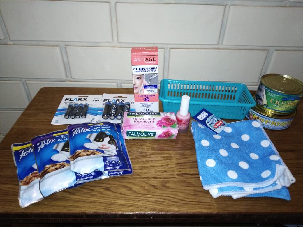 Опять ходила в Фикс прайс Купила немного Покупки на 501 рубль, было бы 526, 63, но у меня накопились баллы и я их списала Самое главное, что надо было купить - это батарейки, понадобились и пальчиковые и мизинчиковые, алкалинове батарейки, по четыре штуки в упаковке стоят всего 50 рублей Набор тряпочек из микрофибры - 50 рублей за 3 штуки Мыло Palmolive - 55 рублей за не стандартный кусок 150 грамм Корзиночка хозяйственная, маленькая всего за 11 рублей Лак для ногтей - стимулятор ускоренного роста за 55 рублей Увлажняет и укрепляет ногтевую пластину. Предотвращает ногти от расслаивания Посмотрим какой будет эффект, до этого брала лак такого же действия за 250 рублей, эффекта не заметила И еще взяла попробовать новую сыворотку для лица с секретом улитки за 99 рублей, до этого покупала в Фиксе крем-флюид с фильтратом секреции улитки, тоже за 99 рублей, только другого производителя, очень понравился, теперь не могу его нигде найти, эту сыворотку взяла на замену. Всем спасибо за просмотр,