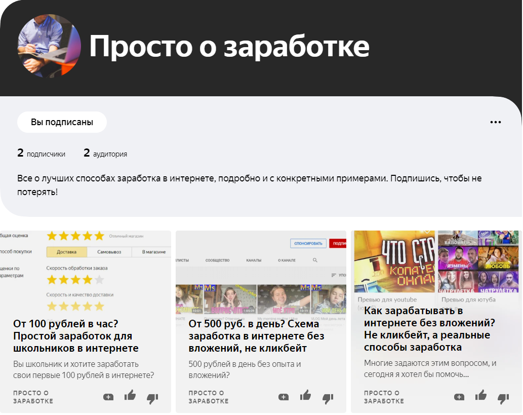 Произошли некоторые неприятные обстоятельства, из-за которых мне пришлось создать новый канал на Дзене. Он также связан с заработком, поэтому сильной разницы между старым и новым нет: