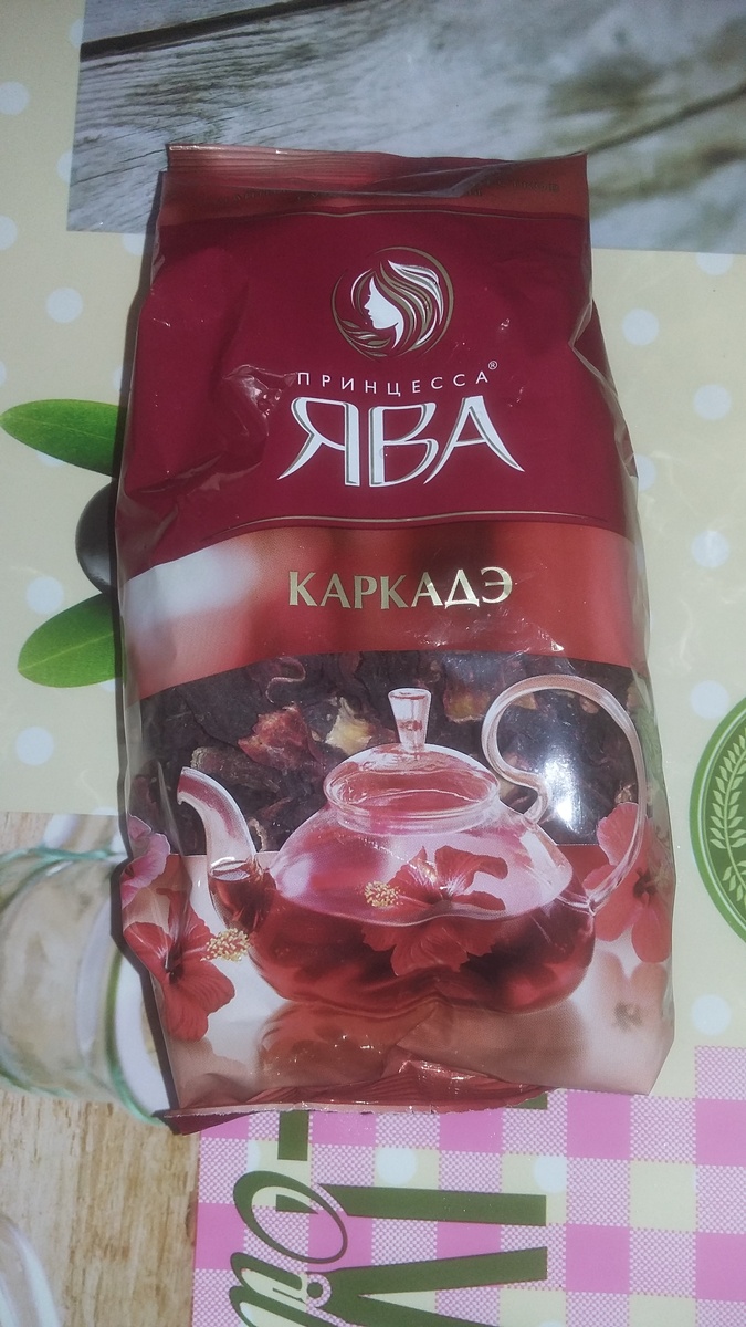 О пользе этого кисленького цветочного чая стоимостью в 44 рубля за упаковку интернет богато кишит схожей по сути информацией. Вот я сегодня что то очень захотел залить порцию в свои уставшие жилы: кислой, полезной, дарующею бессмертие и силу (так считали те самые фараоны, если нам конечно не врёт интернет), эссенцию "Суданской розы". Эти сушёные лепестки кроме всяких там пестицидов и гербицидов обязаны в себе содержать из минералов: магний, железо, фосфор, натрий, калий, кальций. Витамины: А, В, РР и быстро разрушающаяся в кипятке аскорбиновая кислота. Так, что если надо повысить витамин "С" в крови, а кроме как упаковки сухого "КАРКАДЭ" нет не чего, то можно слопать смело эти листья не запаривая кипятком. :) Я лично предпочитаю употреблять этот кисленький нектар добавив немного сахарку. Заливаю щедрую щепотку лепестков крутым кипятком и жду 3-4 минуты, не меньше. Ароматами этот напиток не блещет, но на десерт, после доброй порции пельмешков пьётся очень хорошо! Напиток отлично