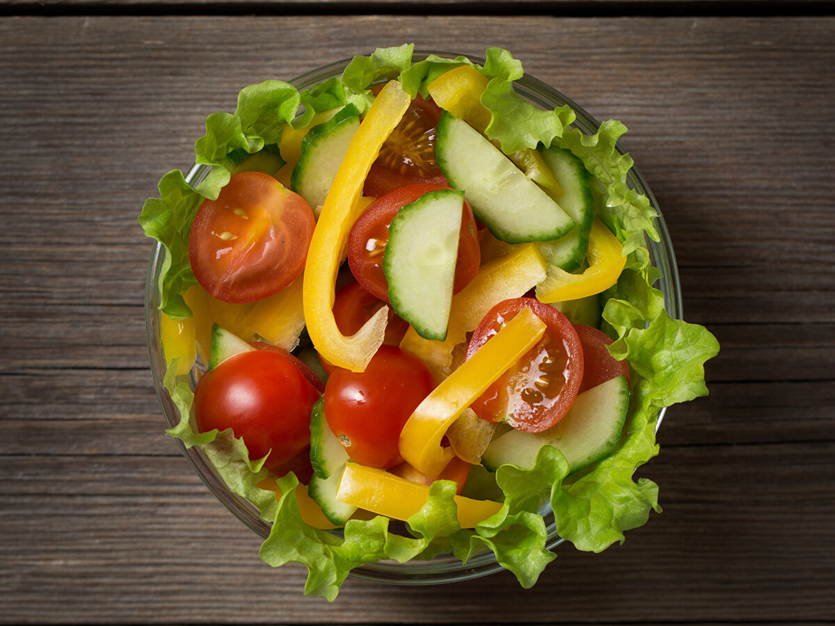 Сегодня мы приготовим самый простой салат в мире! Нам нужны всего 7 ингредиентов: 1. Огурец 2. Помидор 3. Болгарский перец 4. Салат 5.Соль 6. Перец 7. Масло или сметана Приступим к готовке! 1. Нарезаем огурцы небольшими кусочкам и кладем их в тарелку 2. Помидор также режем небольшими кусочками 3. Нарезаем Болгарский перец небольшими кубиками 4. Салат рвем на режем на средний листочки 5. По вкусу добавляем соль и перец 7. По вкусу заправляем сметаной или маслом Готово! вы приготовили простой и вкусный салат! Приятного аппетита!