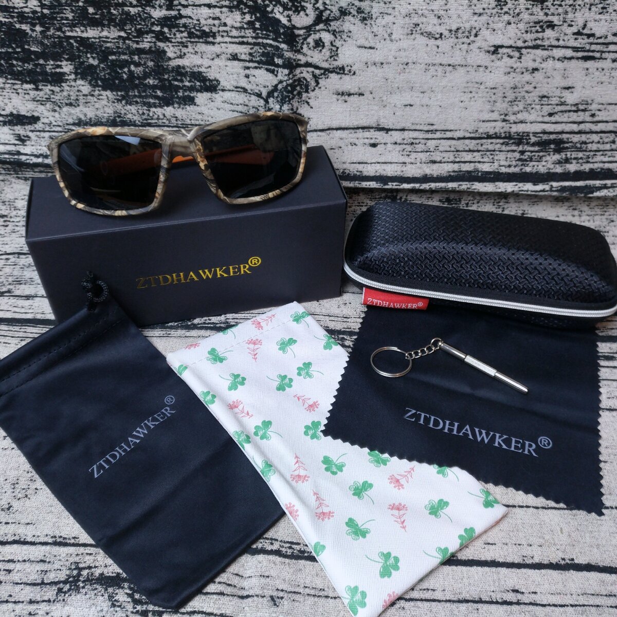 Чем же эти очки отличаются от обычных солнцезащитных очков? Почему именно эти подойдут для охоты и рыбалки? Нет, не из-за расцветки, которая здесь камуфляжная (похожа на «Осенний лист»). У продавца, кстати, есть ещё и с чёрной оправой. Всё дело в том, что эти очки поляризационные и имеют форму, которая обеспечит широкий угол обзора, при этом, защитит вас от бокового света. Для чего нужна поляризация? Чтобы защитить ваши глаза от бликов, тем самым, обеспечив вам хорошую видимость. Именно поэтому такие очки, в первую очередь, нужны охотникам, рыбакам и водителям. В комплекте нет специальной картинки для проверки поляризации, но у меня осталась такая от других очков. Тест на поляризацию очки прошли замечательно. У продавца есть различные варианты цвета самих линз: серый, оранжевый и голубой. Обратите внимание, что здесь вопрос не только в эстетике и вкусах, а и в зависимости: чем светлее линзы, тем ниже степень поляризации. Но это не значит, что они хуже, просто нужно выбирать линзы п