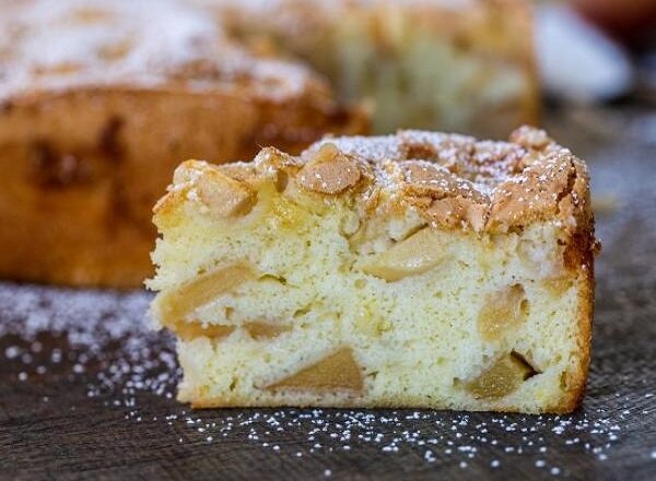 Яблочная шарлотка имеет яркий яблочный аромат, нежный пышный бисквит, а еще – тонкую карамельную корочку наверху. Она потребует всего 5 ингредиентов и около 25 минут времени для приготовления!
