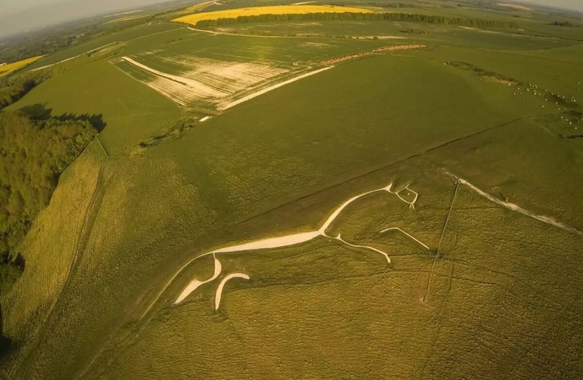 Добрый день дорогие читатели! Сейчас множество людей знают о существовании загадочного и единственного изображения Уффингтонской Белой лошади, которое находится в Англии. В большом и очень красивом графстве Оксфорд на склонах холмов, высечены огромные картины людей и лошадей. Среди всех этих уникальных и удивительных картин издалека видно изображение Белой лошади, длина её достигает примерно 110 метров, а ширина этого создания 30 метров. Самое необычное в этом изображении то, что у лошади мордочка имеет вид клюва и у нее далеко непохожие конечности обычного животного. Картина Уффингтонской лошади считается одним из памяток древности и находится под защитой государства. Об известной всей планете возвышенности Белой лошади пишется в древних записях ещё в 1070-х годах. Предположительно Уффингтонская белая лошадь была высечена в конце V века, потому что в те времена белая лошадь была символом саксонских завоевателей , хотя другие ученые утверждают , что данная эксклюзивная картина появил