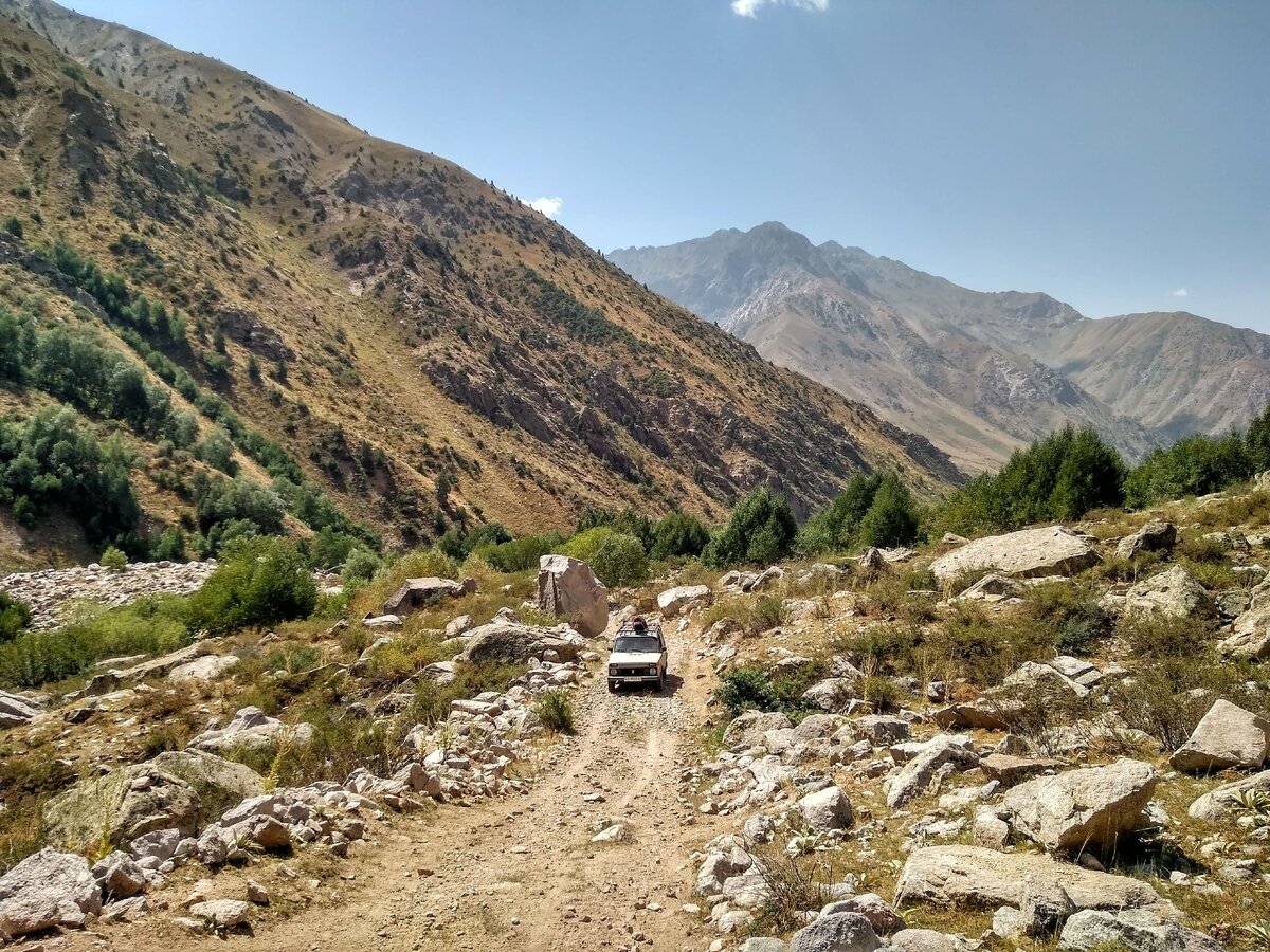 Поход вдоль Ойгаинга был моей мечтой много лет. Территория труднодоступная из-за сильной удалённости от цивилизации, отсутствием нормальной дороги и тем, что все территория является приграничной, что вносит сложности в организацию похода. Но мечты они и для того мечты, чтобы сбываться! День первый. (10 августа) Середина августа 2018 года мы мчимся на машине к редко посещаемым местам долины реки Ойгаинг. Выехали из Ташкента глубокой ночью и приехав в поселок Така-Янгак около 6 утра пересаживаемся на Ниву 4х4, Нива — это минимум из того, что может проехать так далеко куда мы стремимся. На самых сложных участках нам приходилось выходить из машины и идти немного пешком и это хорошо, это давало нам размять ноги и поснимать окружающую природу. Долго ли коротко ли, но к обеду мы прибываем на СЛС Ойгаинг. Отметились у пограничников и продолжаем путь. Дархан — это наш водитель любезно согласился подбросить нас выше по дороге пока есть возможность, сэкономив нам этим несколько часов ходьбы