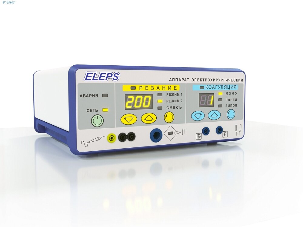 Согласно существующему законодательству Российской Федерации в сфере здравоохранения, наличие высокочастотного электрохирургического аппарата является обязательным стандартом оснащения операционной. Каков же принцип действия ЭХВЧ (электрохирургического высокочастотного воздействия) и в чем его преимущество? Электрохирургический аппарат генерирует электрический ток (частота 100КГц–5,5Мгц), который преобразуется в тепловую энергию. При этом выделяется большое количество энергии, что приводит к мгновенному испарению воды и разрушению ткани (в момент прикосновения электрода с тканями тела). Электрохирургический аппарат имеет несколько режимов работы, что позволяет производить как рассечение, так и коагуляцию биотканей. Тип и температура воздействия изменяется как с помощью параметров тока, так и в зависимости от размера электрода. Так например, для резания используется непрерывный режим, а для коагуляции – импульсный. Если хирургу во время операции необходим мощный, ло