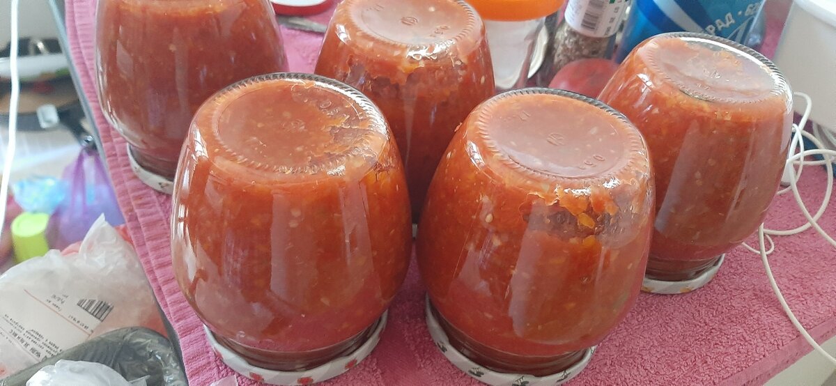 Приветствую вас на моем канале! Не забудь подписаться на мой канал, чтобы не пропустить новые рецепты! В продолжении темы про зимние закрутки предлагаю рецепт домашней аджики. Острая, ароматная и достаточно экономый рецепт. Для приготовления аджики нам понадобится: Готовим. Все овощи пропускаем через мясорубку и ставим варить в большой кастрюле. После закипания убавляем огонь и варим на медленном огне 20-25 минут пока не станет нужной консистенции. Для тех кто любит жидкую аджику этого времени будет достаточно, для любителей более густой консистенции необходимо прокипятить подольше, чтобы лишняя вода выпарилась. За 5 минут до готовности добавляем специи. У меня это соль примерно столовая ложка (надо пробовать на свой вкус), острый красный перец(сухой), паприка (дает более насыщенный аромат) и можно добавить немного сахара (1 ст.л) для более мягкого вкуса. Баночки стерилизуем удобным способом, крышки кипятим 5-7 минут. Горячую аджика раскладываем по баночкам, переворсчиваем и укрыва