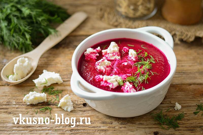 Ингредиенты 1. Свекла 300 гр 2. Помидоры 600 гр 3. Лук репчатый 1 шт 4. Бульон овощной 1 л 5. Масло растительное 2 ст.л 6. Йогурт 100 гр 7. Мята свежая 10 гр 8. Соль по вкусу 9. Перец черный молотый по вкусу Рецепт 1. Луковицу очистить, мелко порубить и обжарит в сотейнике на растительном масле до прозрачности. 2. Свеклу отварить до готовности, очисить и натереть на крупной терке. Добавить свеклу к луку и обжаривать 2 минуты 3. С помидоров снять шкурку и порезать их крупно. Добавить к овощам вместе с бульоном. Довести суп до кипения и варить 8 минут. 4. Снять с огня и сделать пюре с помощью блендера. Приправить солью, молотым черным перцем. Подавать с йогуртом и листиками свежей мяты.
