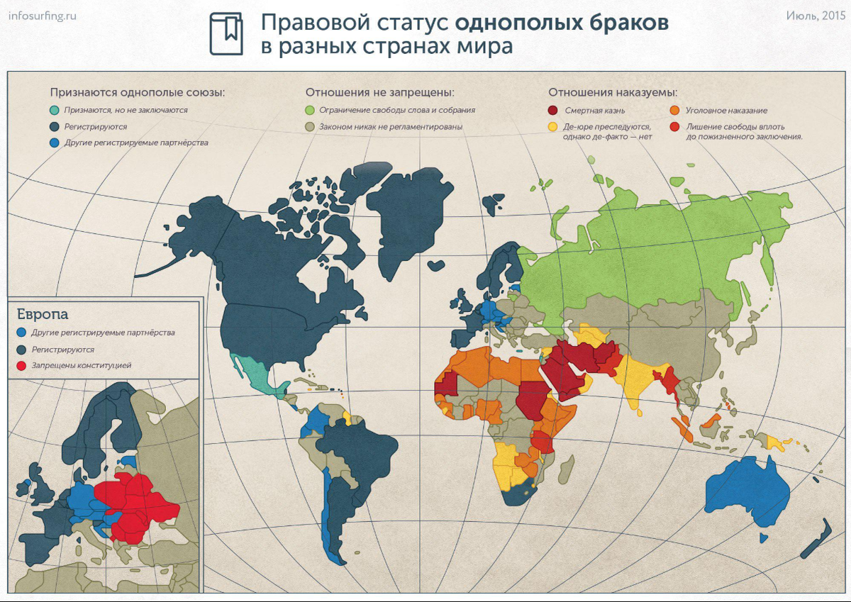В каких странах легализованы однополые браки, а в каких за них грозит смертная казнь