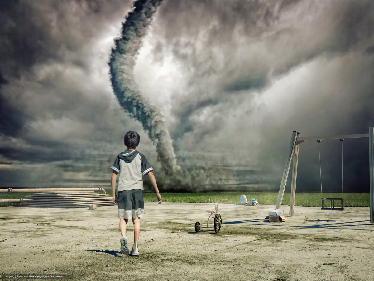 Что будет если человек попадет в торнадо. Время от времени, мы видим, как по телевизору, в новостях, сообщают о том, что в разных частях нашей планеты происходит такое явление природы, как торнадо. Что же будет если человек попадет в область этого стихийного явления? Торнадо — это вращающийся с большой скоростью смерч представляющий собой воронку из ветра, опускающийся из кучево-дождевого облака или образующийся под кучево-дождевым облаком и касающийся земли. Приближаясь, торнадо издает звук, похожий на грохотанье поезда или на звук водопада. При этом скорость ветра в его эпицентре достигает 100-200 метров в секунду! Ветер такой силы может срывать крыши, разрушать некоторые сооружения, вырывать с корнем деревья – в общем, сносить все на своем пути. Внутри этого вихря образуются небольшие турбулентные завихрения (воронки), развивающие скорость вращения более 300 метров в секунду. Любому живому существу (в том числе и человеку), попавшему под действие такой воронки, очень не пове