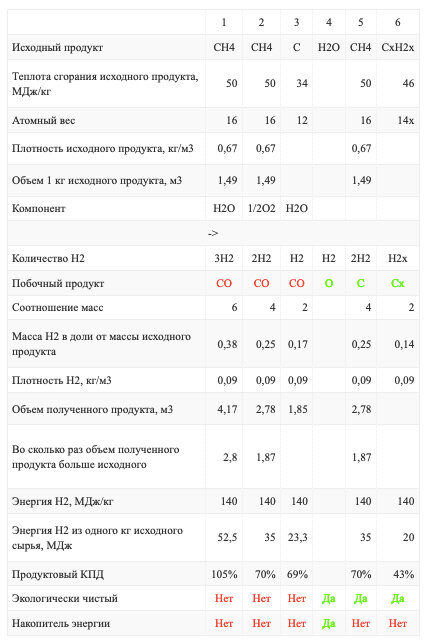 Как видно из таблицы первые три способа получения не являются экологически чистыми, так как образуется угарный газ, который потом надо дожигать и образуется CO2. То есть, это все то же самое #сжигание ископаемого топлива , только раздельное – уголь сжигается, например, в России, а водород в Европе.